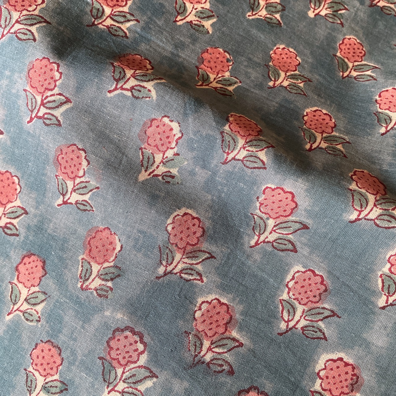 サラサラと気持ち良く柔らかい生地で、程よい薄さで速乾性もあるインドハンドブロックプリント生地の手ぬぐいです。