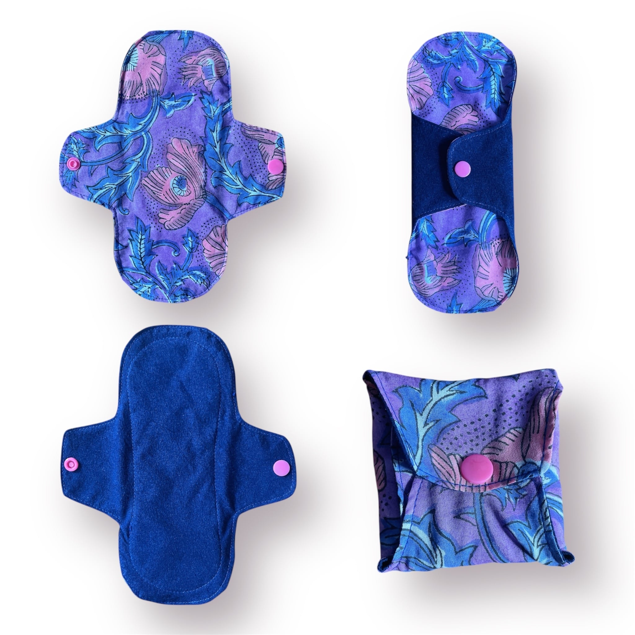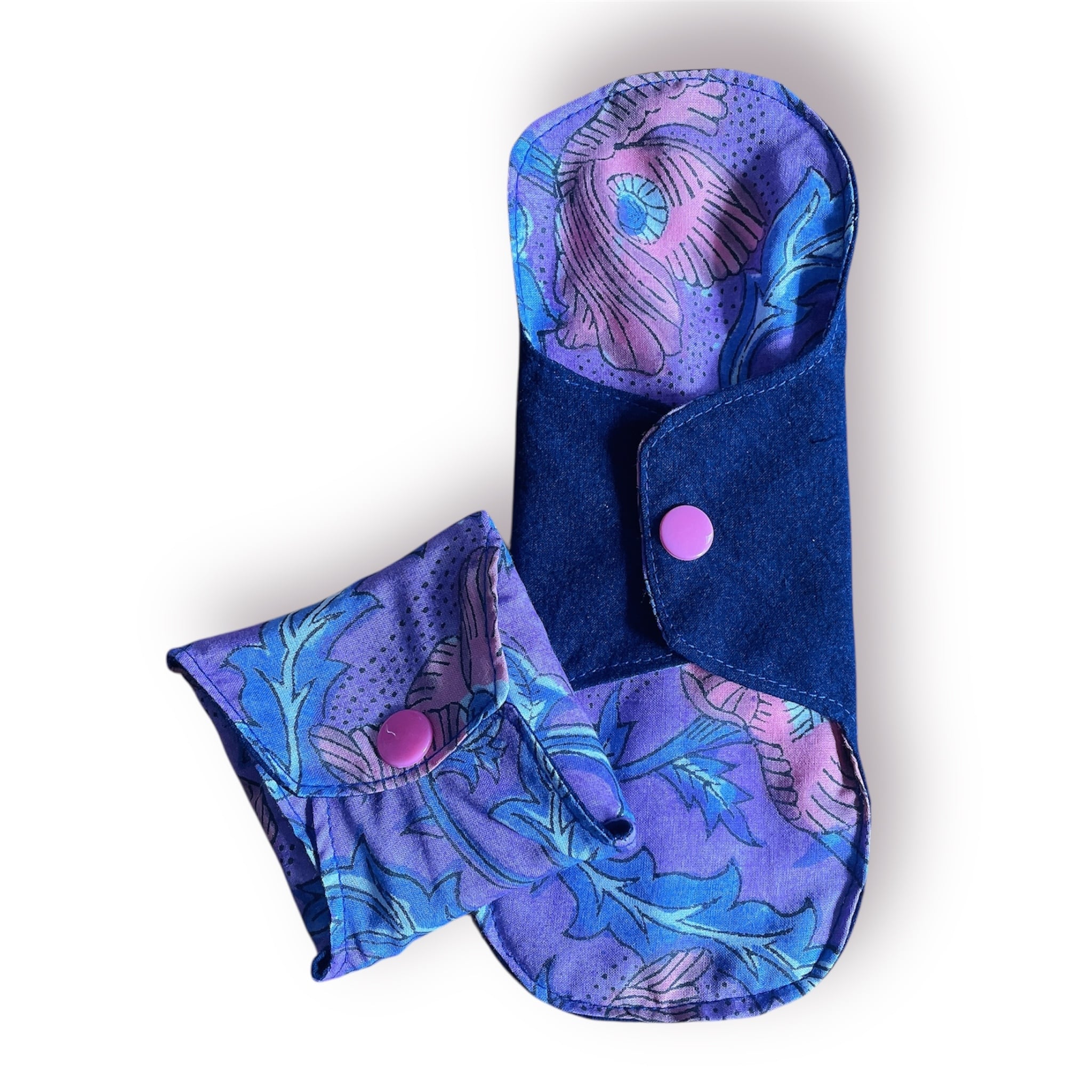 洗ってくり返し使える 藍染め布×植物染料インドハンドブロックプリントの パンティーライナー