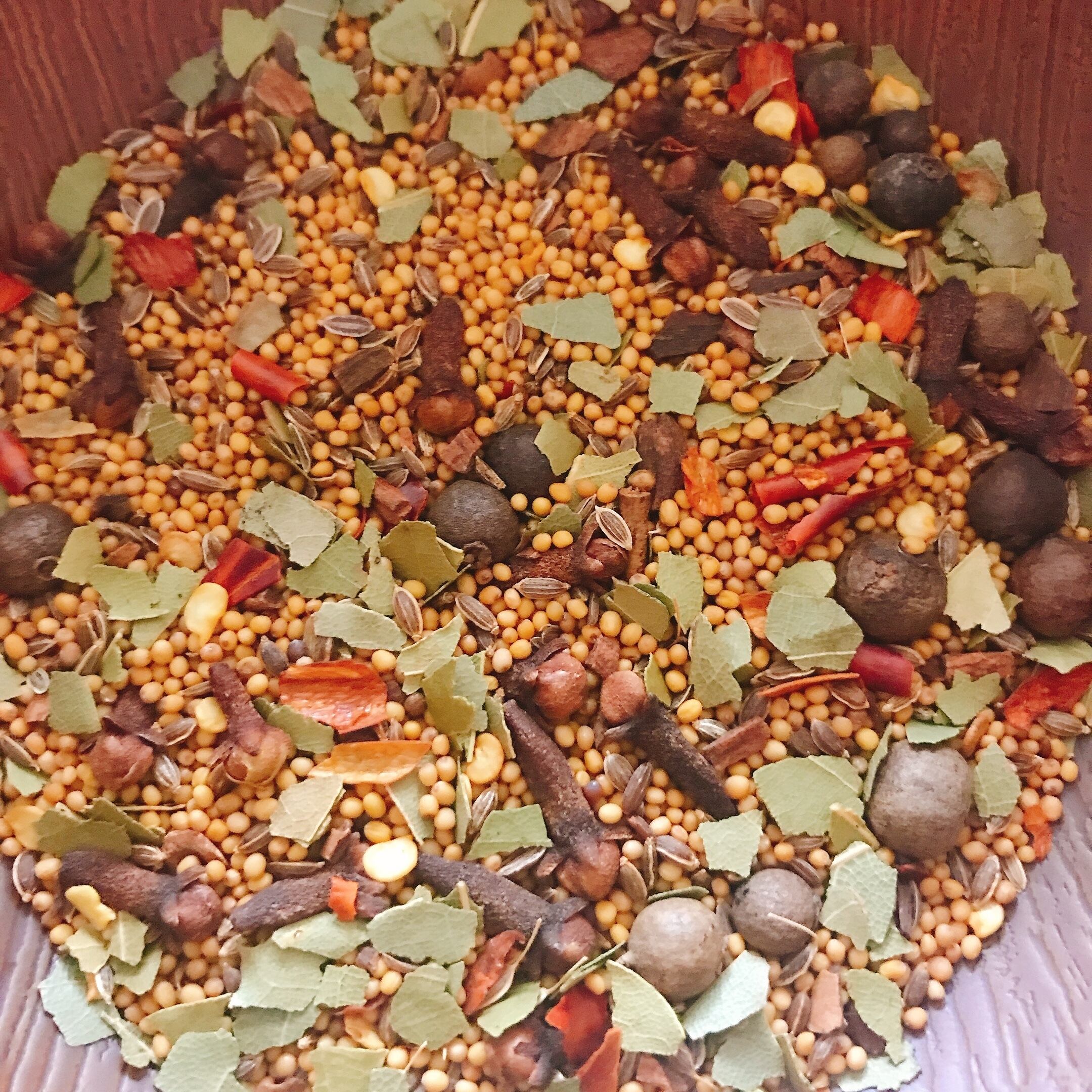 オールスパイス、クローヴ、ディルシード、カイエンペッパー、マスタードシード、シナモン
